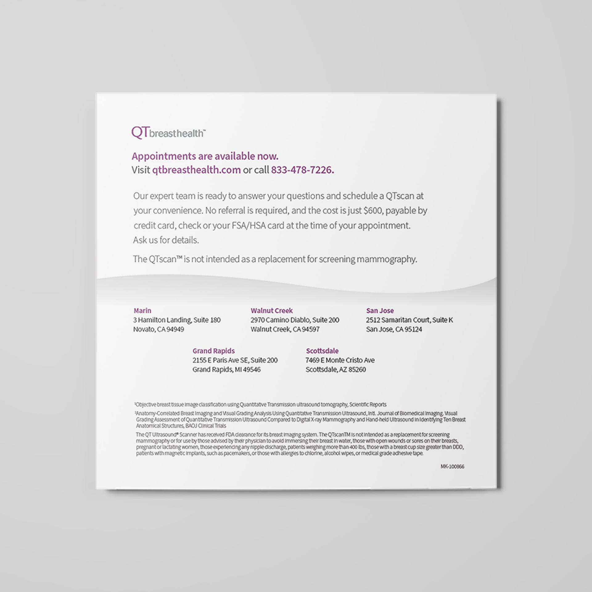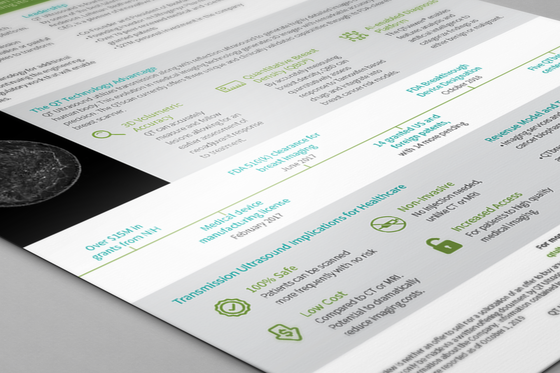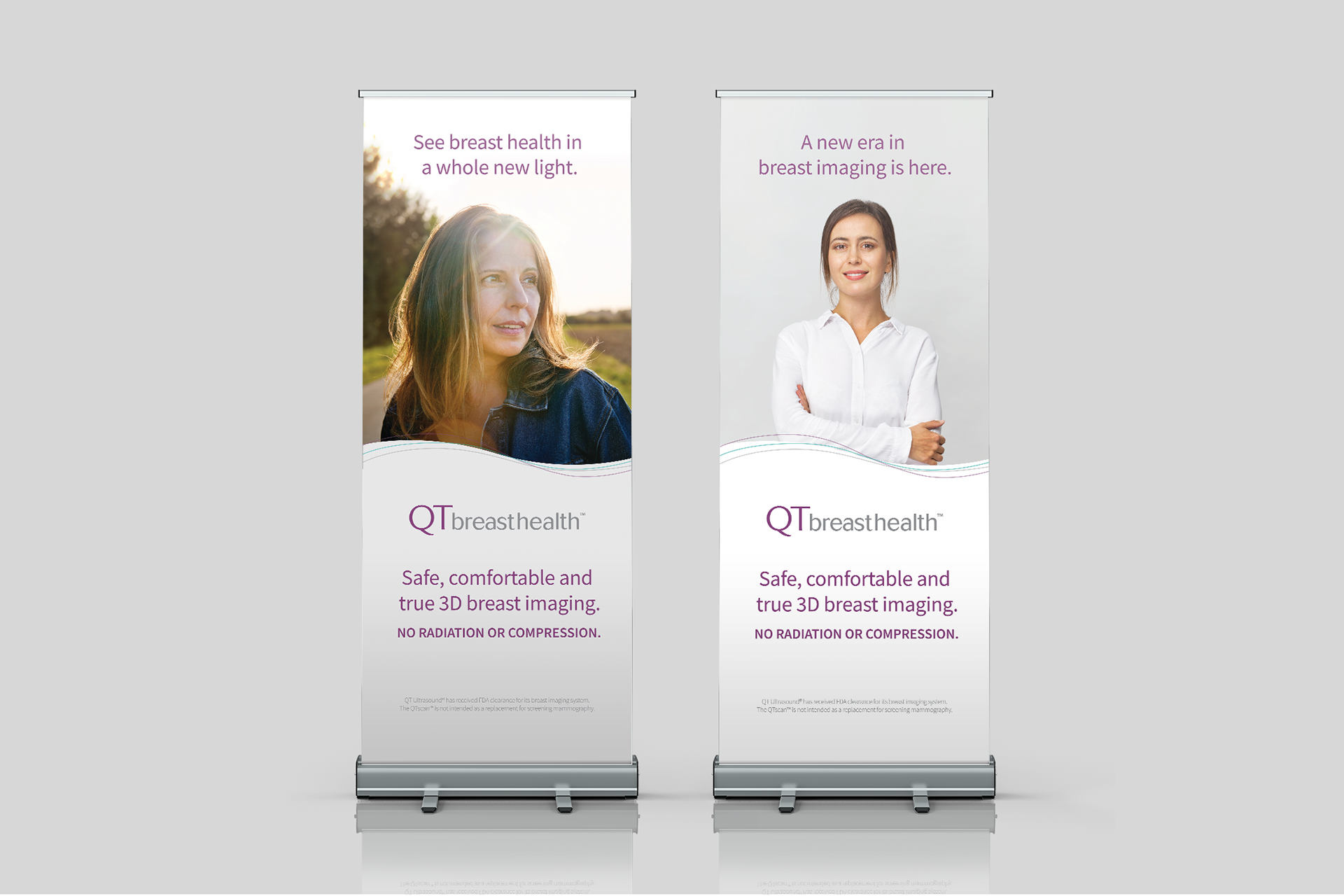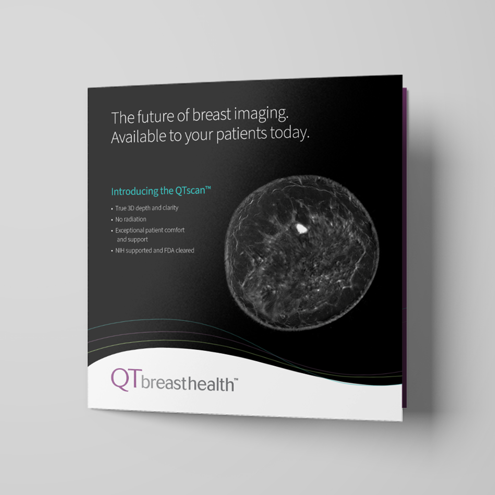 Two trifold brochures were created for two distinct audiences. One focused on patients, highlighting the benefits of choosing QTbreasthealth’s services. The other targeted doctors and specialists, explaining the technology behind QTbreasthealth and how it works.