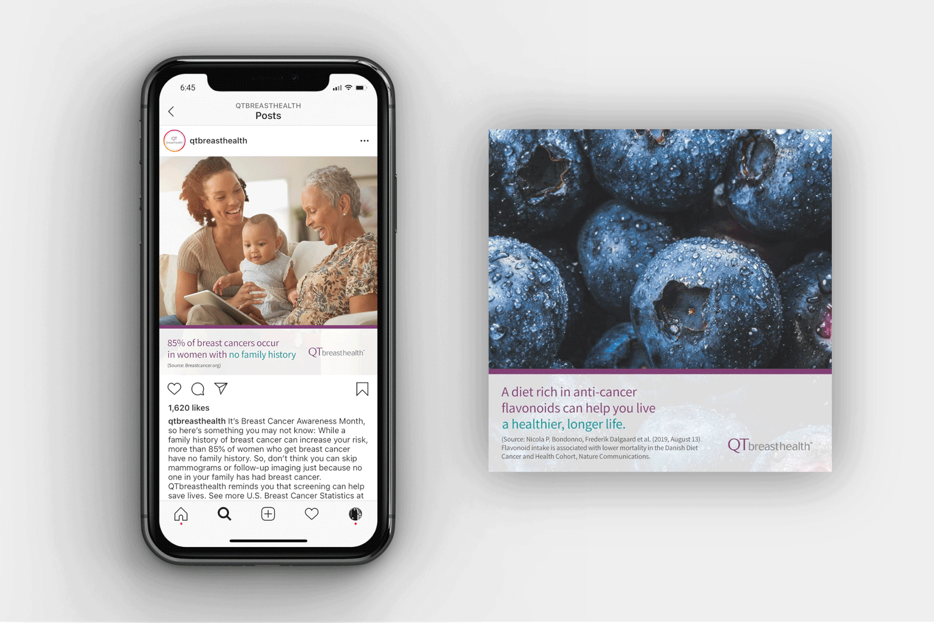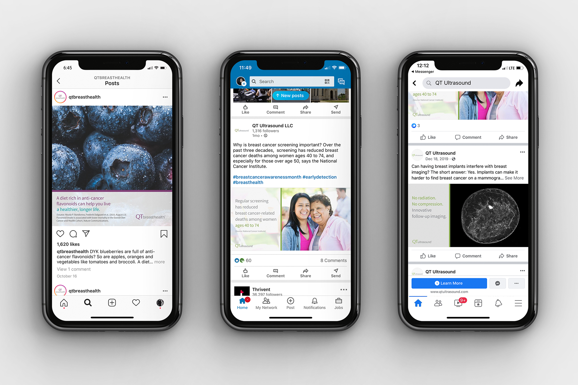 Every print and digital piece was designed to match QTbreasthealth’s look and feel while also building on it. The goal: a brand that feels consistent everywhere it shows up, from websites to waiting rooms.